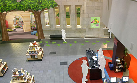 Interactive, stimulating wayfinding that leads children from the entrance, through the adult library, and into theirs.