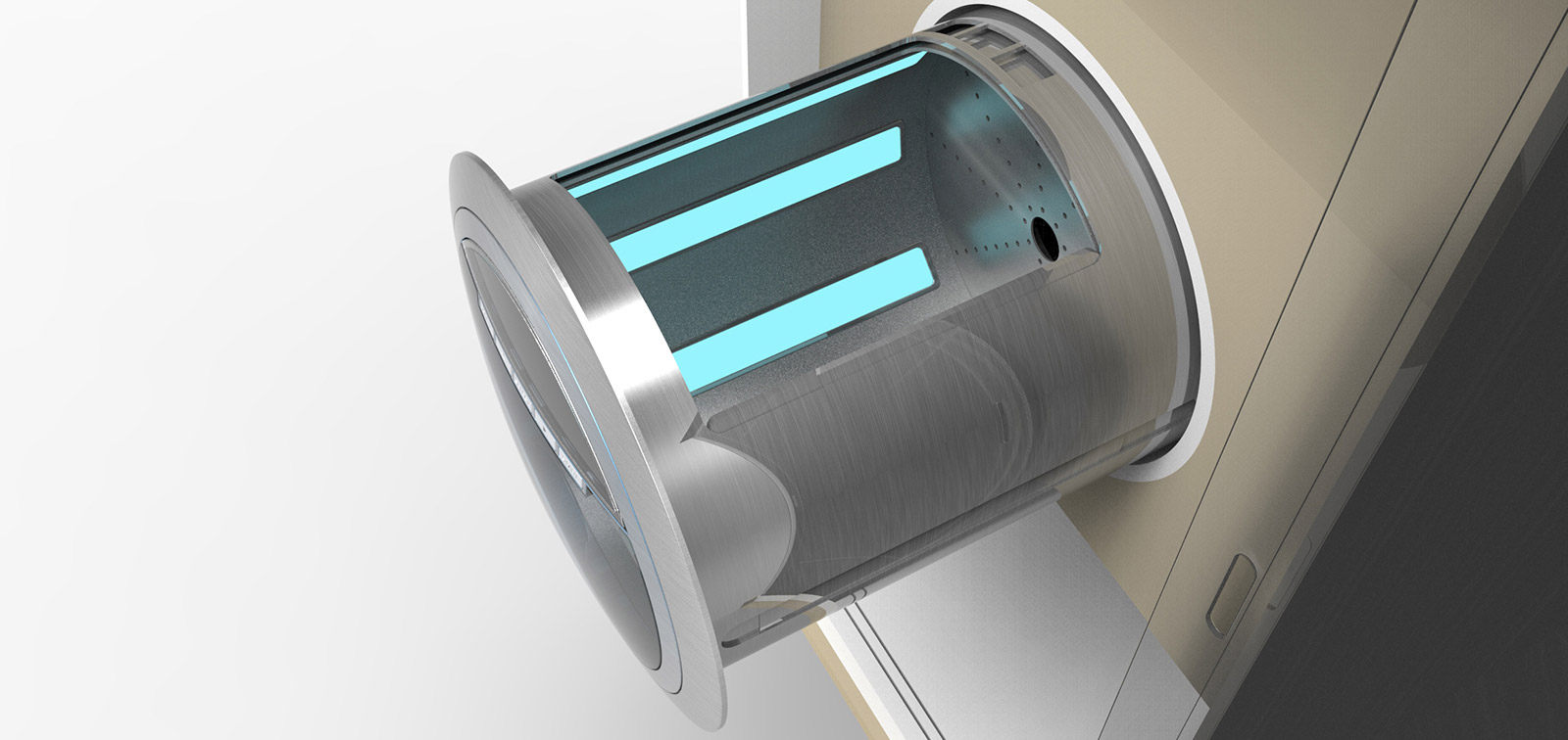 All-in-one machine with furniture embedded design and retractable drum, saving room space.