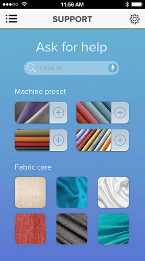 Access to specific fabric care, machine presets download or laundry tutorials.