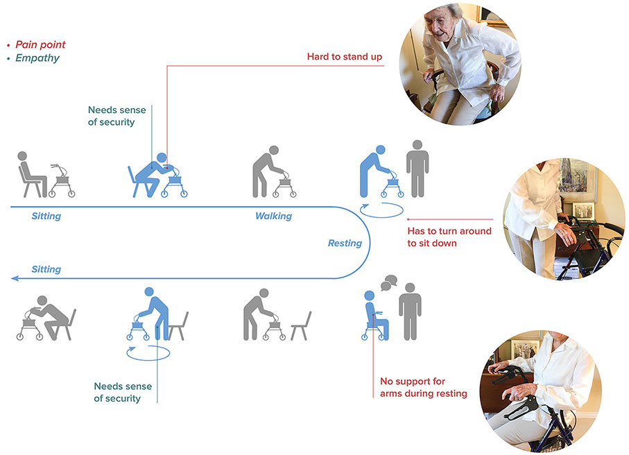 Senior mobility issues affect every aspect of senior's life, especially in safety concerns. Current product, such as walker, only focuses on solving one mobility problem at a time. Although it helps seniors walk, problems still remain when it comes to switching between sitting and standing. Walking, standing and sitting have yet to be addressed as whole, which has ignored by most designers.