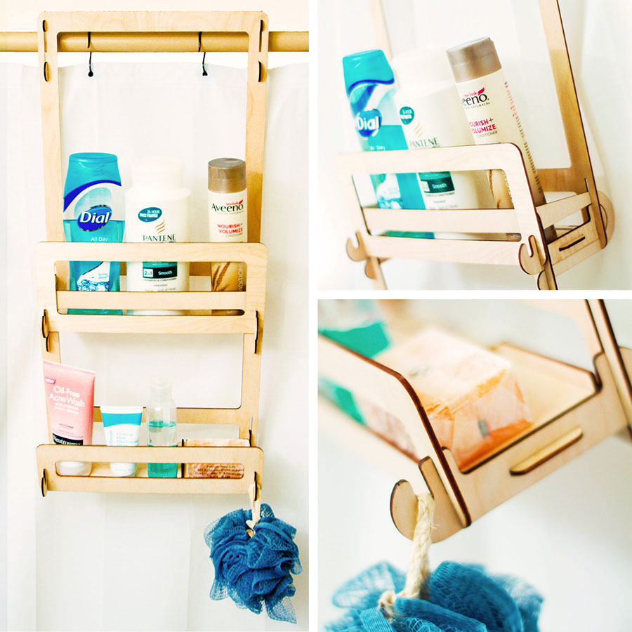 Mosto is a group of customizable laser-cut shower caddies and closet organizers designed to save room and expand the space. It is designed to hang on curtain or closet rod.